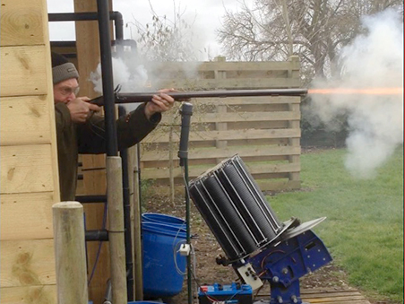 Mike grinning widely as he dusted another clay with the big Coggie 8 bore. The recent work on the breach plug obviously worked with not one single misfire on the day!!