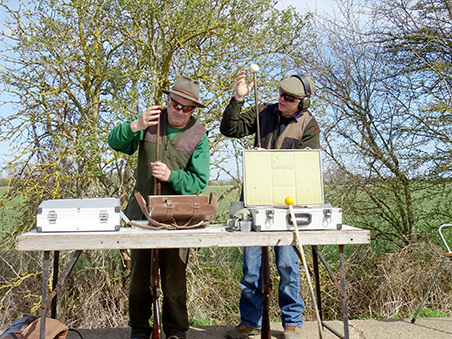 Joining our muzzle loading group for his first visit to Cambridge was 19 year old Curtis, shooting his single barrel percussion gun. Having first been introduced to muzzle loading at the tender age of 12 at the Fenland and Sandringham game fairs, Curtis now goes to Sywell to shoot DTL as well as using his muzzle loader on game shoots and at his local clay club! Clare was using her double percussion gun which helped the squad for scoring duties!