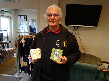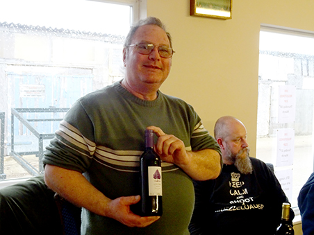 Huge thanks went out to Sandra for her 'outstanding contribution to buttoning and scoring' once more in 2016. Here she is with her 'Viking Festive Hamper'.