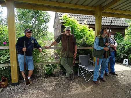Having driven through heavy rain showers on our way to the shooting ground, and with more threatening black clouds as we arrived we were very thankful that Mick, the ground owner had just completed the installation of a full cover for the second compact stand. This meant that we could be split into two squads for the morning's shooting and "keep our powder dry" as they say.