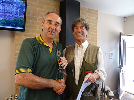 There was some excellent shooting and scores. In the singles, Mike was high gun over Martin with an excellent 23/30, with Clare and newcomer Clive taking joint third place. Sadly Mike could not claim his prize for doing so well in the averages as he was shooting a much bigger load than the other single barrel shots (see footnote*). For the doubles, Bushy shot exceptionally well to take first place closely followed by Dave HS in second and Kevin in third place.