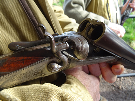 Close up of "Nobby's" fine hammergun - being shot by Derek as a mark of respect for Nobby's sad passing.