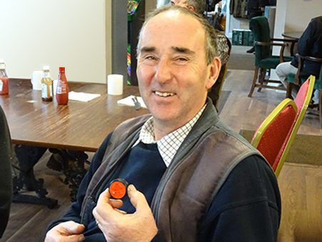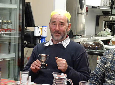 Ted winning the whisky, kindly donated by Bushy. Presented by Martin.