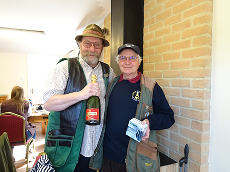 Viking & Pete (SP) tied on averages with a +4. Proudl;y showing their prizes - kindly donated: the champagne from Ted & cartridges from Bushy.