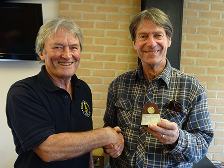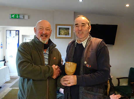 Bev presenting Mike with the 'Day' winners goblet for his mighty fine 25/30.