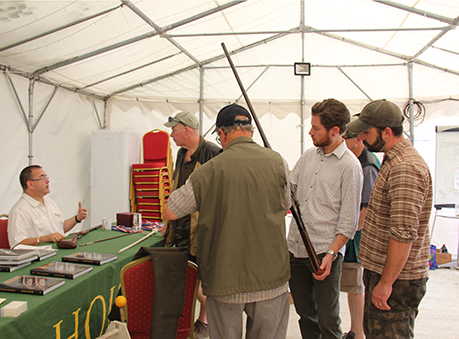 A dry, cool, still and sunny morn greeted the 20 shooters, which was an excellent turnout. The mornings shooting was primarily for the Hammer Gun Tankard, 40 targets as pairs. 14 of the shooters took part in this, 2 more shooting nitro in modern guns and the other 4 opting for their muzzle loaders and shooting 30 targets. A keen young Henry joined us again and had a few shots with a selection of our guns. He shows great promise and put a few of us old hands to shame! We split into two squads and shot stand 5 up t’concrete path, stands 3 and 4 around the corner against the high bank, and newly created driven stands 1 and 2 around another corner from stand 3. There were some fine old breech loaders by some great makers being used, I spotted a Purdey and Boss amongst the selection! Kevin brought along his fine Daw, which was no doubt the earliest breech loader there. Several shooters stayed on for the afternoon session, most attempting to crack the birds they had missed so consistently in the morning! Most managed to get them in the end, which was great to see and very worthwhile.