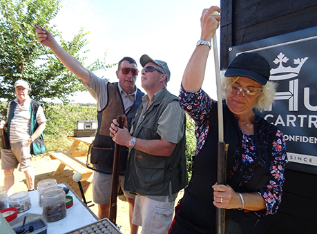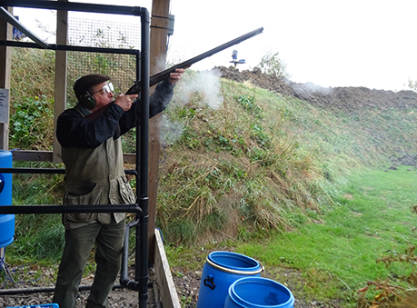 The squad shot over the pond first where the majority of targets were very rangy, with probably less than 50% of them within 40 yards. This really was a shoot for big bores with big loads. The 4 big bore competitors were struggling to get any consistency. Phil had a couple of very nasty hang-fires which fortunately he managed to sort out. Bev achieved the embarrassingly low score of 8 from the 16 targets on this layout which amazingly was the highest of the 4 big bore competitors and a good indicator to the degree of difficulty. Standard guns with standard loads stood little chance. Out of the remaining non-competition shooters Clare was top breaking 4 targets. Poor Fred was having all sorts of problems getting his newly-acquired double barrelled gun to go off which was very frustrating for him.