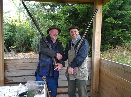 We split into two squads all shooting the 30 bird singles with percussion guns using the skeet and ABT compact sporting ranges. This gave a total of 15 different targets each shot twice only. I think all the shooters would agree that the two layouts displayed some very tricky targets, some of which would have been good birds for nitro guns, but rather more challenging for the muzzle loaders - and the scores certainly reflect this. One target in particular is worth a mention, the “A” bird on the ABT layout, a very fast quartering away midi. Only Martin and the Viking hit it, Viking Pete hit it twice as his first pair! Sadly he did not capitalise on this fine start!