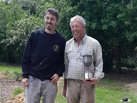 Fred, clutching the Trevor Watling Memorial Trophy which he won after a shoot-off against Graham. Trevor's son and last years winner Robert presented the trophy.
