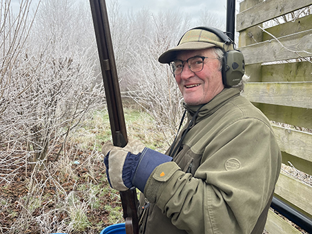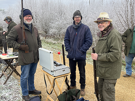 The excitement of getting the muzzle guns going again in 2025 in the eagerly anticipated Bushey’s Pairs was only cooled by the minus six temperatures at the Cambridge Gun Club. It was bitterly cold, every conceivable method of keeping fingers warm was being tested, and even Derek’s welding gloves were being used! The first stand was the well-loved Grouse Butt, a fast incoming high bird that tested the reflexes of overclothed shooters with a much slower angled incomer. Viking Pete, Rob and our host Bushy showed the way by only dropping one apiece. The next set of targets on stand 12 were a wicked combination of fast high R-L crosser with a rapidly dropping, going away, fast R-L bird which caused complete panic. Only Paul D, Derek, Martin and newbie Stewart managed two apiece, the others less and not a single B bird was hit! Sadly Viking’s gun’s balls dropped off with the cold in the Brass Monkey weather, and he completed the competition with his trusted hammer gun. Stand 14 was the calm after the storm with a couple of gentle incomers, Rob and Bushy dropped only one apiece and were now eager to get at stand 11. A pair of L-R incoming pigeons were offered here and Derek in his welding gloves dropped only one, with Kevin and Bushy chasing with only two dropped. Stand 15 was tucked away but had a wicked sting in the tail with two very different targets, the L-R fast crosser was hard enough, but the going away teal was only visible for a moment or two. The vertically challenged amongst us struggled to see it long enough to get a chance, so it was almost miraculous that Kevin the carpet, (although with his new taller hips) dropped only two as did the very much taller Bushy, with Martin and Derek following with three dropped.