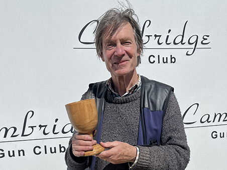 Both Fred and Graham (Simmo) had hit 24, so a shoot-off was necessary to establish the trophy winner. It is worth mentioning that Simmo was using a flint gun, so his score was particularly impressive. The shoot-off took place on the pond layout. A suitably difficult pair of targets were selected. Fred won the toss and opted to shoot first. These were hard targets but Fred smashed them both. It was now Simmo’s turn, unfortunately he missed his first target but hit the second more difficult one. So the winner of the Trevor Watling Memorial Trophy was a very happy Fred. Congratulations!!