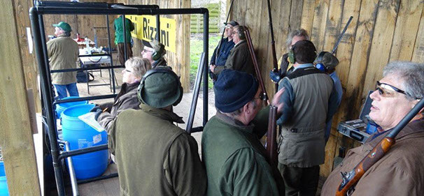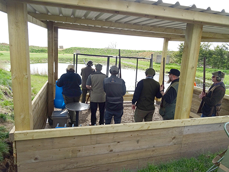 Having driven through heavy rain showers on our way to the shooting ground, and with more threatening black clouds as we arrived we were very thankful that Mick, the ground owner had just completed the installation of a full cover for the second compact stand. This meant that we could be split into two squads for the morning's shooting and "keep our powder dry" as they say.