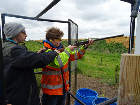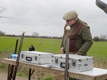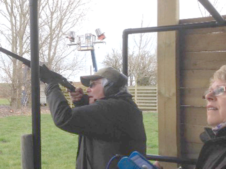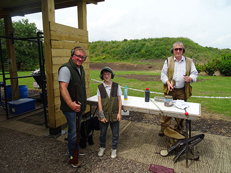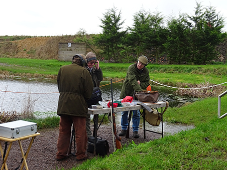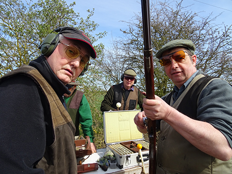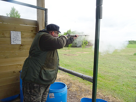 Joining our muzzle loading group for his first visit to Cambridge was 19 year old Curtis, shooting his single barrel percussion gun. Having first been introduced to muzzle loading at the tender age of 12 at the Fenland and Sandringham game fairs, Curtis now goes to Sywell to shoot DTL as well as using his muzzle loader on game shoots and at his local clay club! Clare was using her double percussion gun which helped the squad for scoring duties!