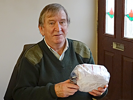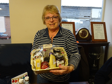 Huge thanks went out to Sandra for her 'outstanding contribution to buttoning and scoring' once more in 2016. Here she is with her 'Viking Festive Hamper'.