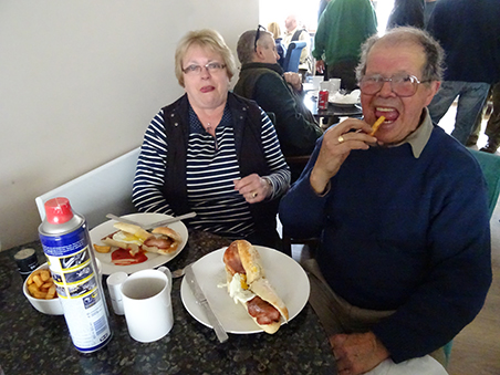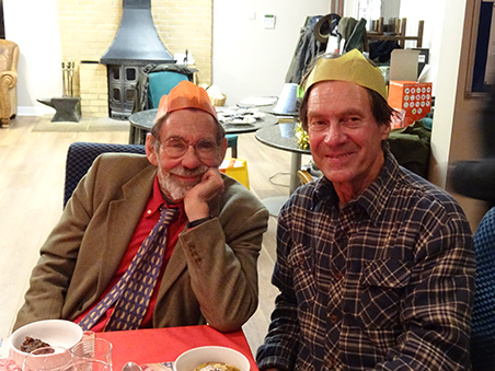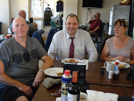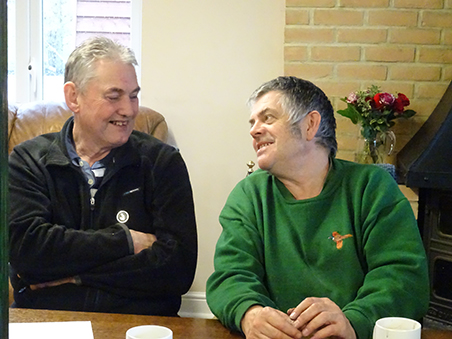 Paul R demonstrating rather well to Pete (SP) the 'right handed/right eye dominant (both eyes open) method of scoffing Xmas Pudding and custard.