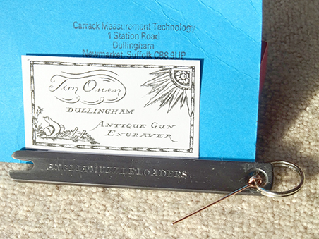Owing to the variety of guns shot the averages were not awarded. Prizes were given to the first 3 places of the Hammer Gun comp, with Paul R & Tim in joint third place, receiving a tin of WD40 and wine respectively, SP Pete was given a hammer gun mug and 2 cans of "Craft Dan" beer for his fantastic achievement of being runner up and winner Mike was given a tool for removing percussion caps off the nipple. This very useful item also has a pricker attached and is designed and engineered by our very own Tim. We recommend that if you have not already got one, that you add it to your Christmas list as at £10 each it is the ideal tool to have with you when game shooting as well as at the clay range!! (see photo above).