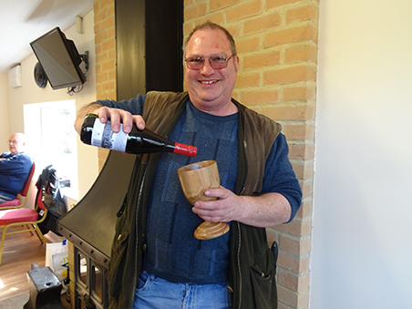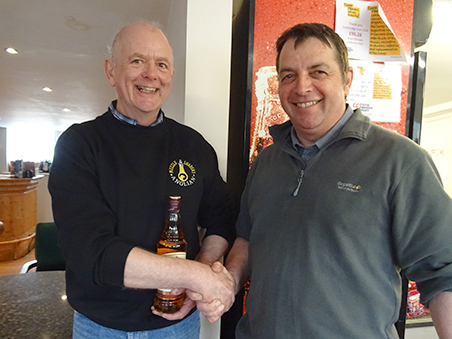 Ted winning the whisky, kindly donated by Bushy. Presented by Martin.