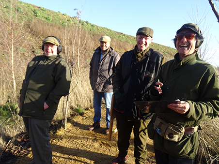 Stand 5 had 4 different targets all low and problematical with the low sun. Little Dave got going on this one with a good 6/8 much to his relief! Tim, much to his surprise and delight, also shot 6. Viking shot a fine 7. On to Stand 4 and the fast r/l quartering away mini snipe and the very fast l/r battue. Due to the wind, the snipe lifted significantly upon reaching the top of the bank, and if left alone (or missed) doubled back towards the cage! Tim started to suffer with misfires which no doubt affected his performance after a good start. 50% here was good, Mike managed 3/4 to leave the stand level with the Viking.