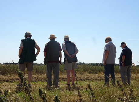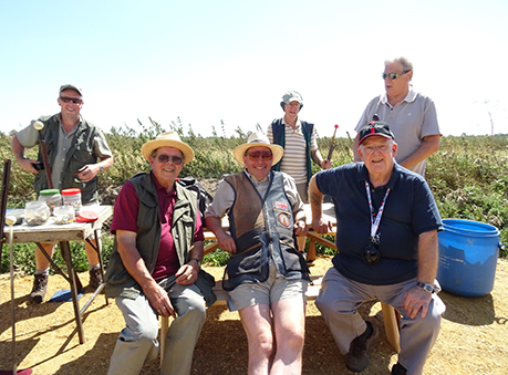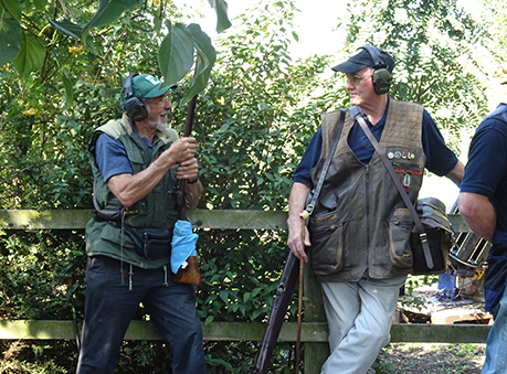 We had a real mixture in our squad. Out of the 8 shooters using breech loaders only 6 were using hammer guns. Dick, because of a medical condition, was using his over and under .410 with nitro cartridges. Paul Revere had brought along his dad Brian who, using a modern gun, shot some of the targets but was restricted as to what he could comfortably shoot because of a recurring medical condition. We also had 2 muzzleloaders, Clare and Paul Revere who were both using single barrel guns. Tony B was also shooting with us but had to retire after a couple of stands because of physical discomfort. Derek, because of another medical condition, was restricting himself to a load of ½ oz. This enabled him to compete and remain vertical throughout, but obviously had an effect on his performance. Anyway out of the remaining competition shooters it was tight at the top (nothing to do with the retention of money, although some may disagree!) with Tony R, Bushy and Bev vying for the top spot in this squad. The nemesis for all of us was stand 3 where try as we might none of us could connect with the left to right high quartering bird and to a lesser extent stand 4 where only Phil made any significant impression getting 4 from the 6 targets, the rest of us were floundering with a score of 3 or in most cases less. Most of the squad had moderate success on stand 5, although the sun and the smoke made it difficult to see some of the targets. The driven targets were handled well by some, in particular Tony R who only missed only 1 of the targets on the 2 driven stands, and not so well by others, no names no pack drill. Highest scorer in this squad was Bev with 28 which put him in 2nd position overall, closely followed by Bushy and Tony R with 27.