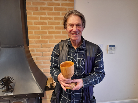 Bev delighted to receive the wooden trophy after shooting a 26 ex 30 with his flinter.
