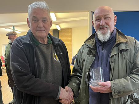 Fred, clutching the Trevor Watling Memorial Trophy which he won after a shoot-off against Graham. Trevor's son and last years winner Robert presented the trophy.